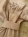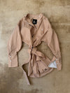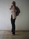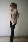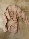 Lehce oversize střih působí uvolněně, rovně a elegantně — dokud se nerozhodneš jinak. Přiložený pásek ti umožní stáhnout ji dozadu a vykouzlit ženskou siluetu, která je velmi lichotivá. Dlouhé manžety podšité bílou látkou vytvářejí při ohrnutí jemný, ale výrazný detail.